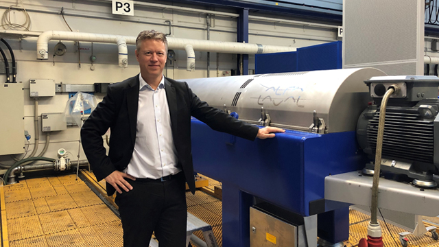 - En del af vores dekantere er allerede digitaliseret, så betjening, support m.v. i dag er digital. Men der ligger også et stort potentiale i opsamling og behandling af data. Hvis alle vores dekantere over hele verden kommer online og løbende opsamler data via en række sensorer, så kan vi langt bedre dele viden og optimere på tværs af lande og industrier. Det vil give et enormt boost til innovationshastigheden, fortsætter han.